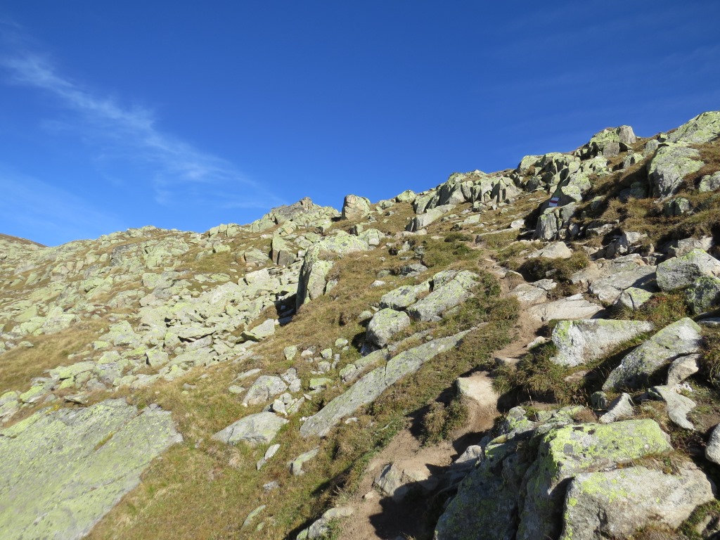 beim Wegweiser in der Senke von Furggulti Punkt 2599 m.ü.M. Es geht hinauf nach Chue Datum 27.03.2015