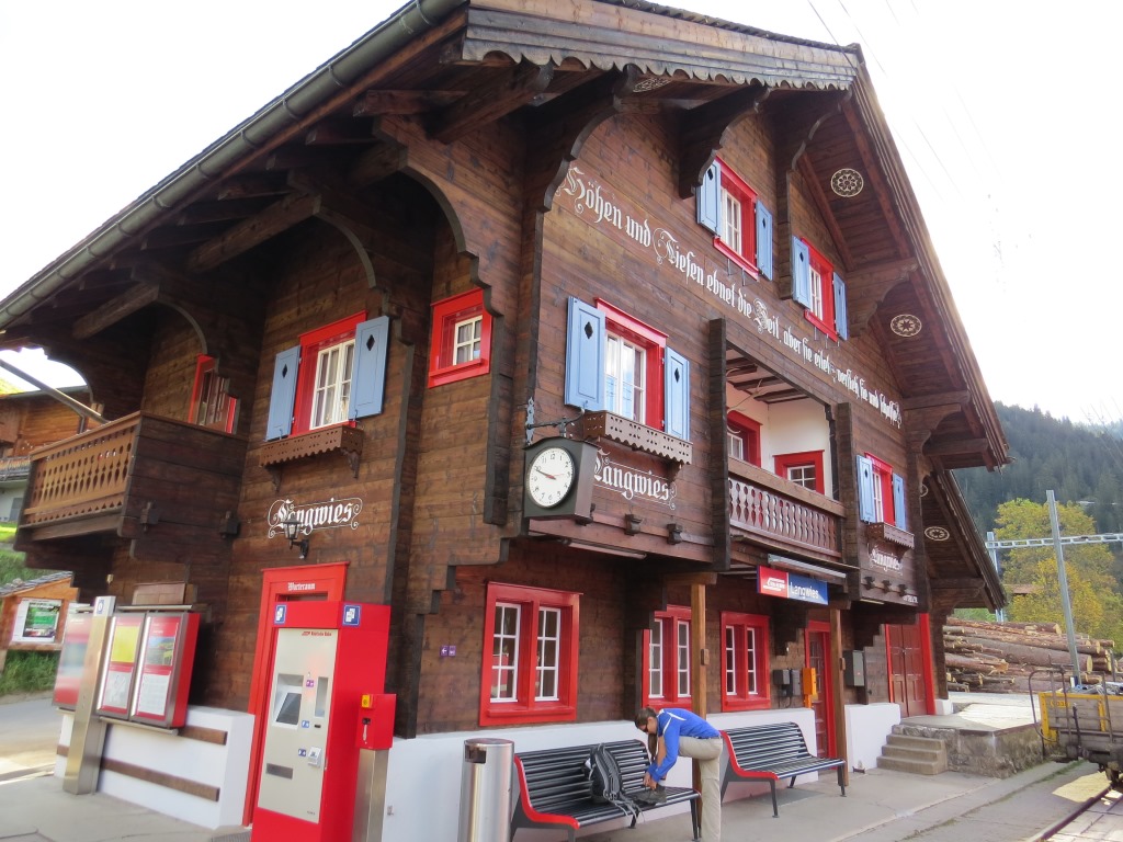 nach einer schönen Fahrt mit der Rhätischen Bahn, steigen wir beim Bahnhof Langwies aus den Zug