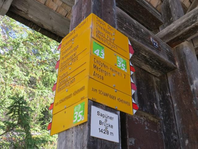 Wegweiser bei der Brücke 1428 m.ü.M.