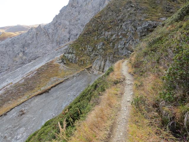 steil führt der Bergweg nun abwärts zur Chörbschhornhütte