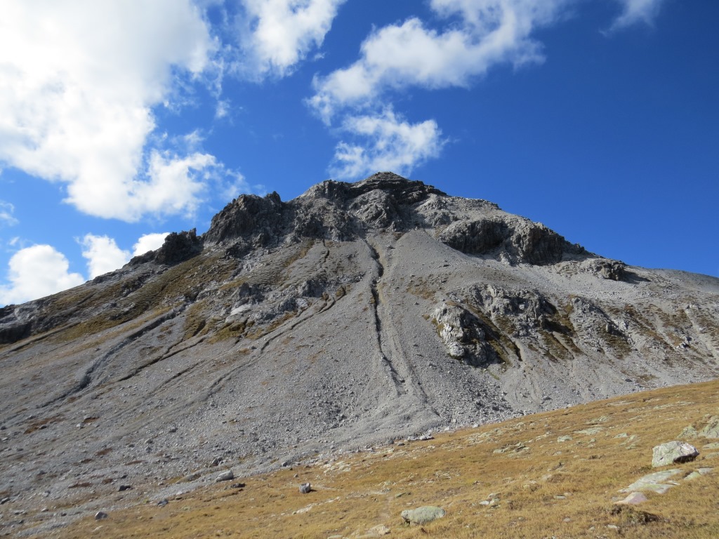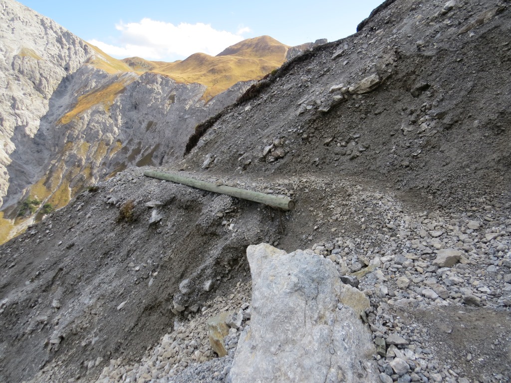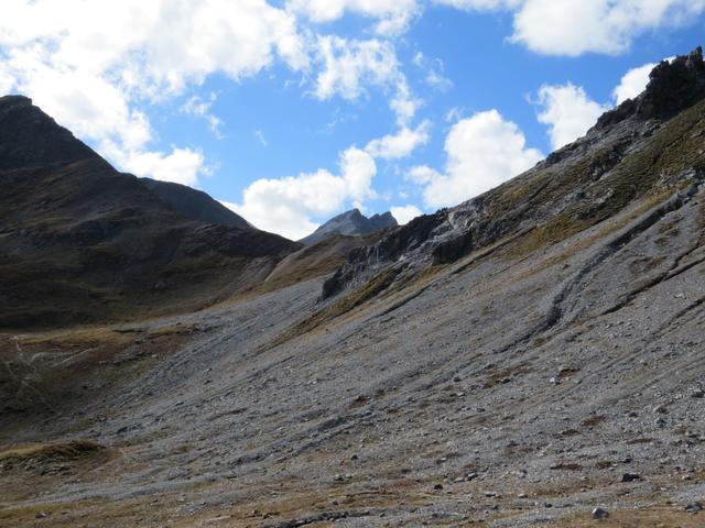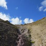 über feinen rutschigen Geröll geht es weiter leicht aufwärts Punkt 2224 m.ü.M.