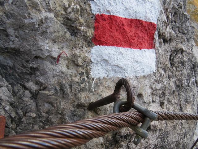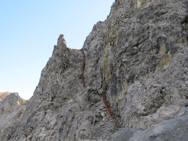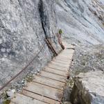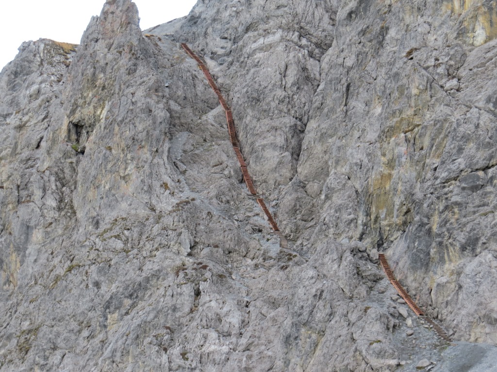 gut ersichtlich die Eisentreppe die bei Tritt über diese senkrechte Felswand führt