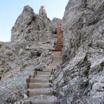 die Treppe zum Teil aus Holz, zum Teil aus Eisen wurde direkt an der Felswand erbaut