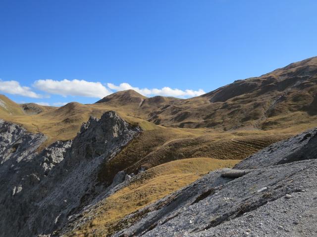 wir wandern nun über diese Hügellandschaft von Alp Hinter Latschüel