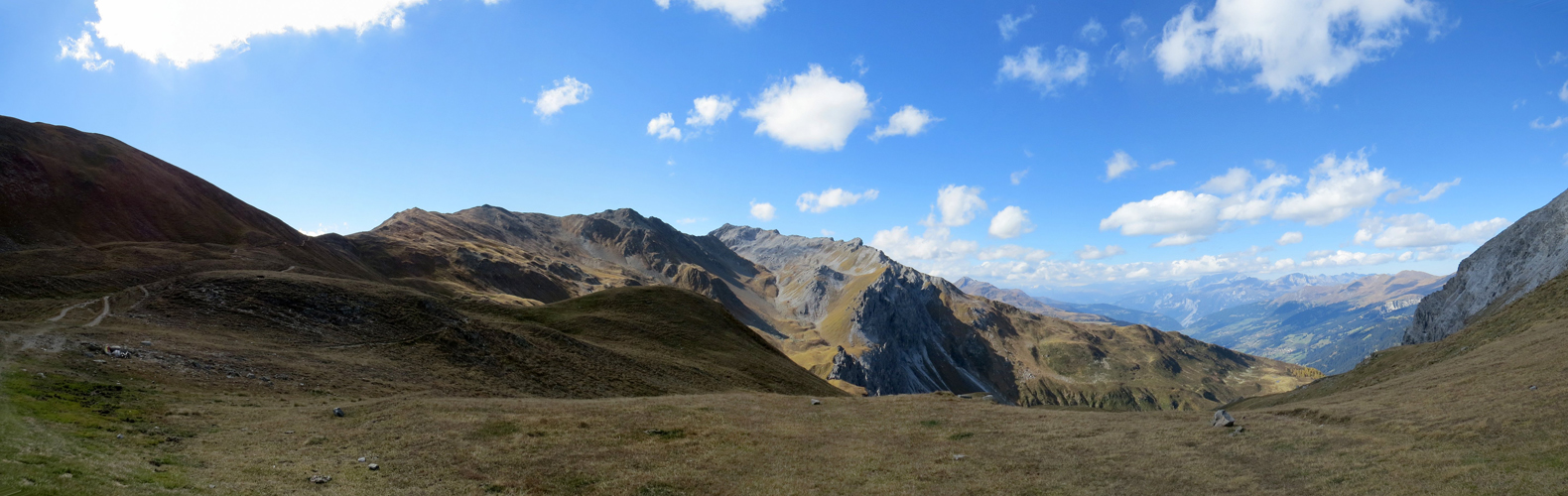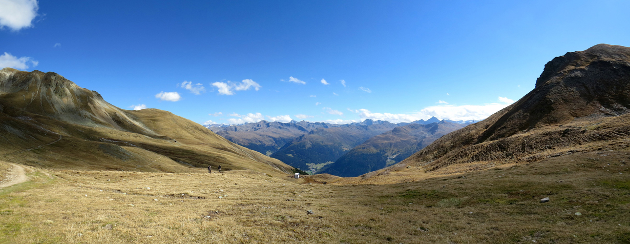 Breitbildfoto von der Latschüelfurgga aus gesehen ins Schanfigg