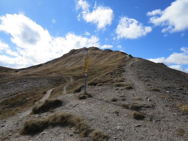 wir erreichen die namenslose Weggabelung. Rechts geht es auf den Chörbsch Horn
