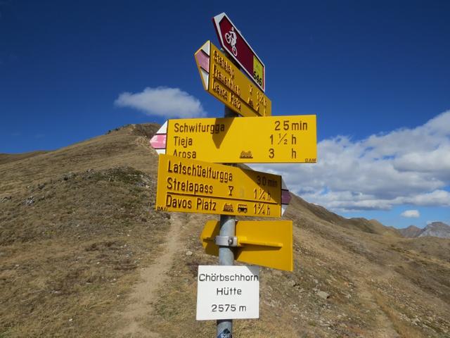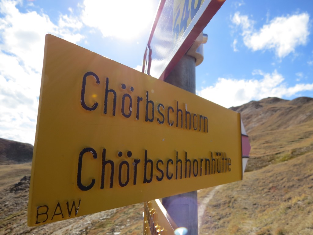 Wegweiser bei der Chörbschhornhütte 2575 m.ü.M.