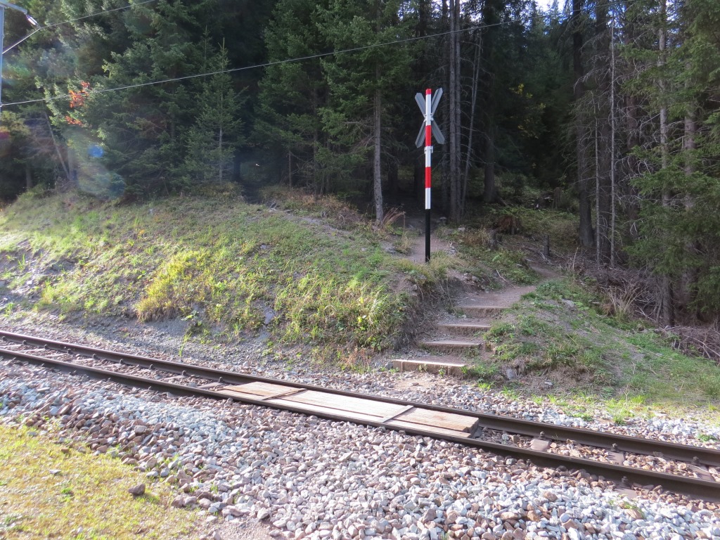 bei Punkt 1607 m.ü.M. überquerten wir die Geleise der Rhätischen Bahn...