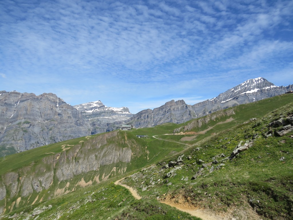 Blick zurück zur Bergstation. Im Hintergrund Wildstrubel, Gemmipass und Rinderhorn