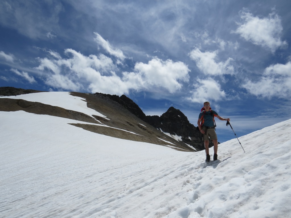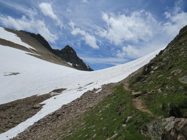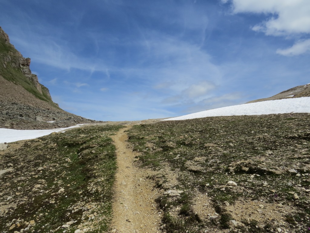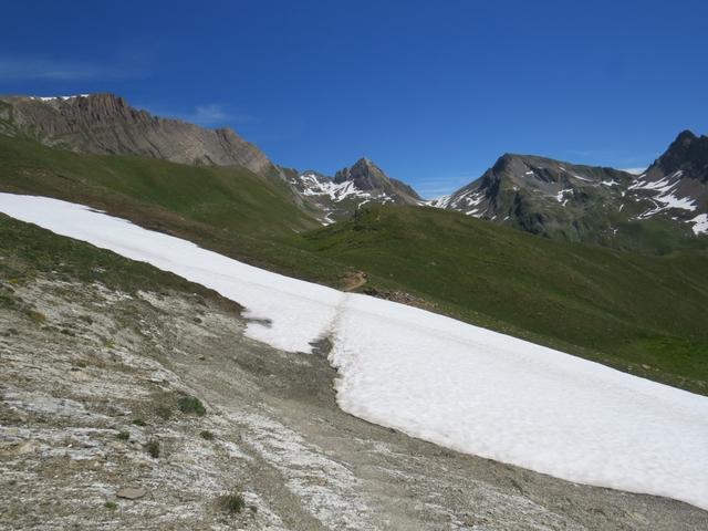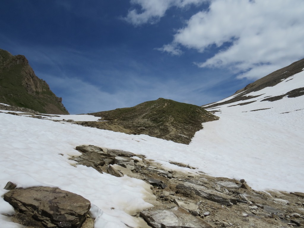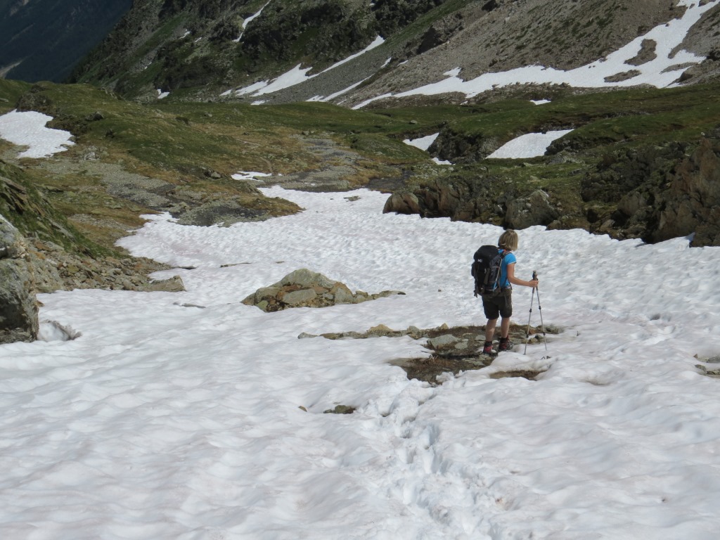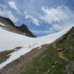 kurz vor dem Restipass erreichen wir die ersten Altschneefelder