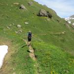 über die steilen Abhänge der Alp Dorbeggen führt uns der Wanderweg hinauf zum Restipass