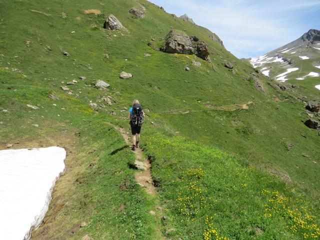 gut ersichtlich der obere Wanderweg. Er wird uns auf den Restipass bringen