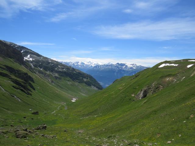 das ganze Lötschental ist ersichtlich. Der Bergkoloss in der Mitte ist das Bietschhorn
