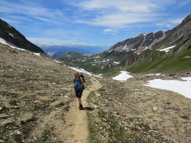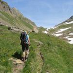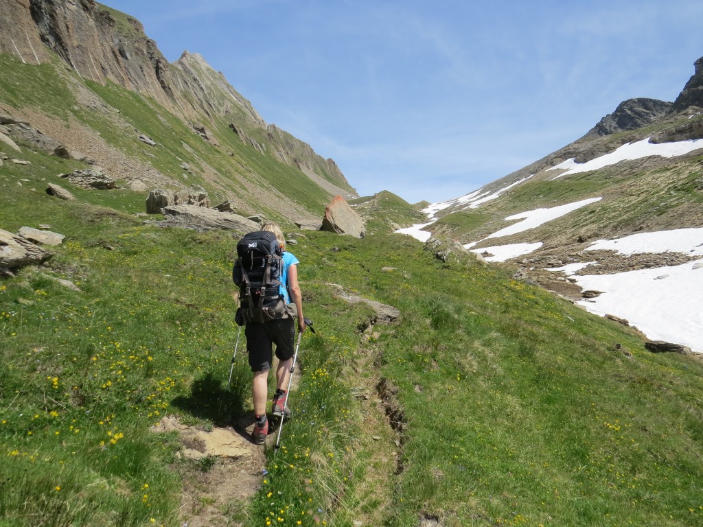 der Abstieg vom Restipass, (der höchste Punkt der heutigen Wanderung), kann beginnen
