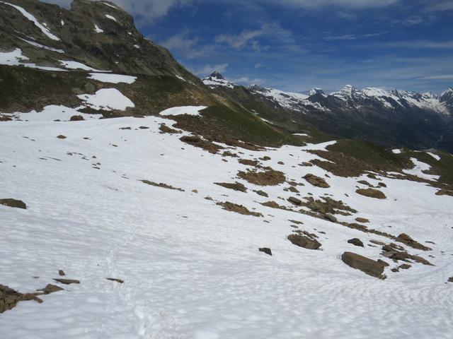 auf der Ostseite des Restipass liegt noch merklich mehr Schnee