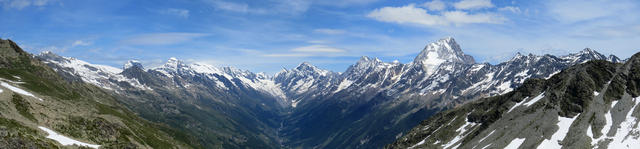 wunderschönes Breitbildfoto, mit Blick in das ganze Lötschental. Rechts das Bietschhorn