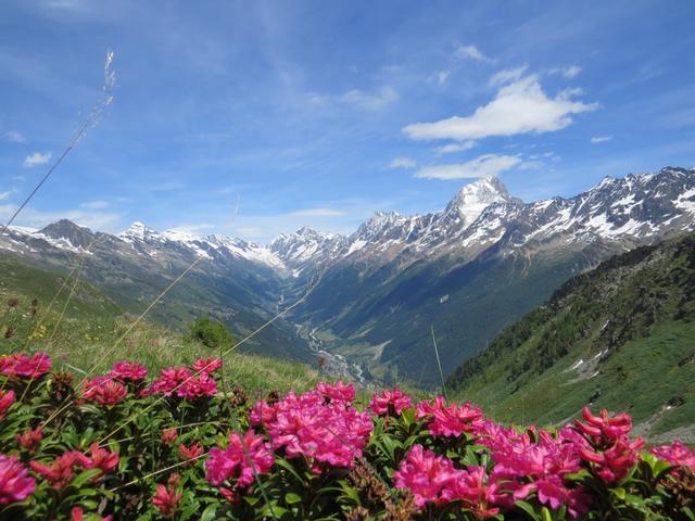 Blick über das Rhonetal zur Mischabelgruppe und zum Weisshorn