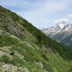 rechts von uns auf der anderen Talseite das Bietschhorn
