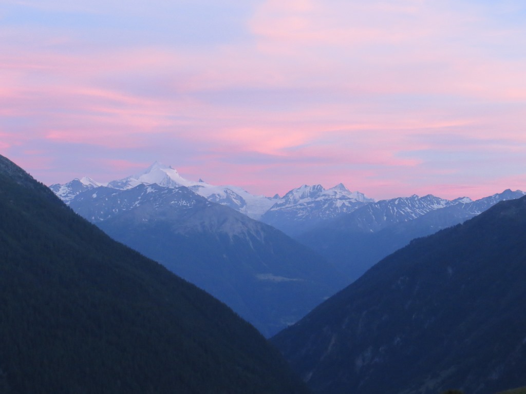 von der Terrasse können wir einen schönen Sonnenuntergang mit Blick zum Weisshorn geniessen