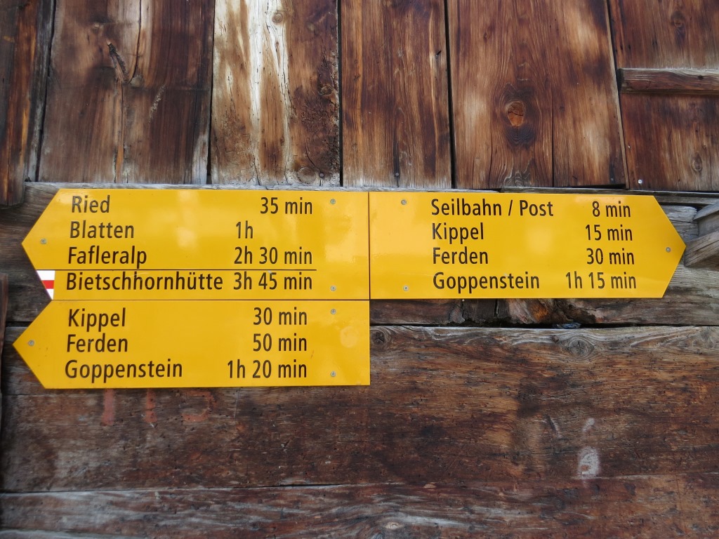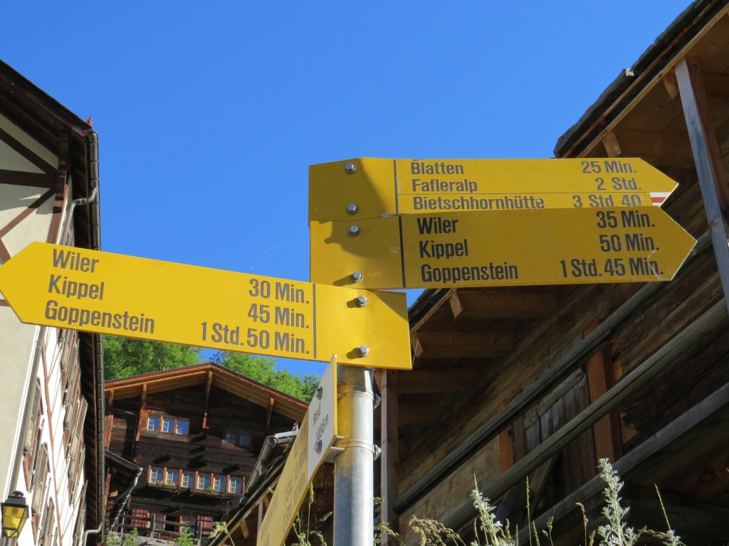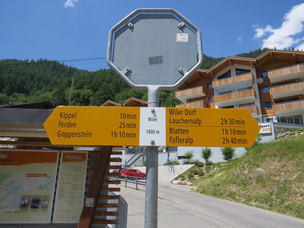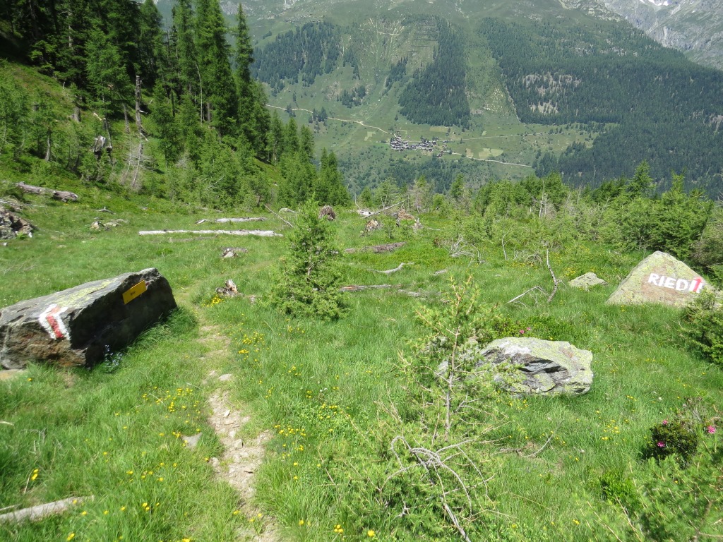 bei der Weggabelung, die uns auf dem Abstieg nach Wiler bringen wird