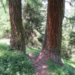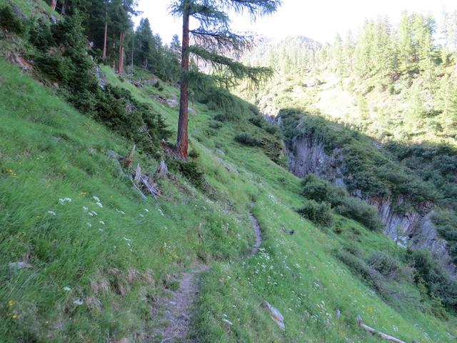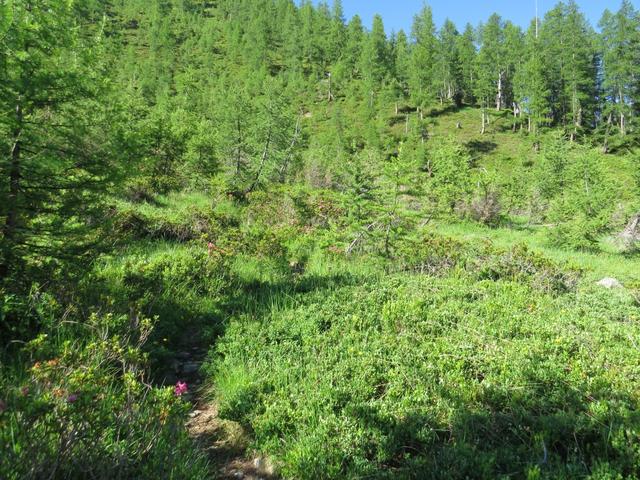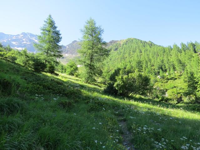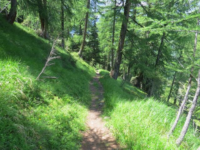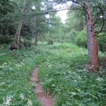 nach dem überqueren des Baches, tauchen wir in einem schönen Lärchenwald unter