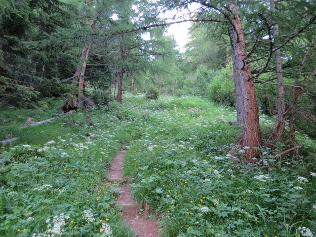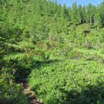 sofort nach den Alpweiden der Birchmatte, tauchen wir in einem dichten Wald hinein