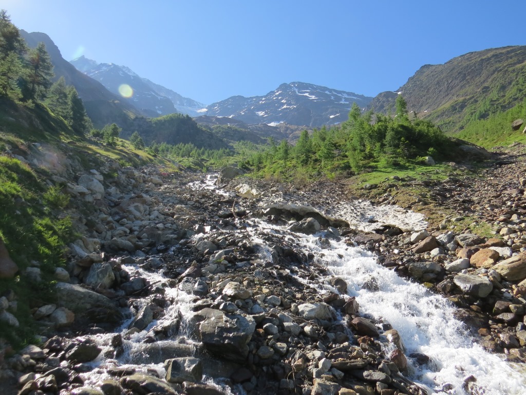wir überqueren den tosenden Nästbach. Er bringt das Schmelzwassser vom Nestgletscher ins Tal runter