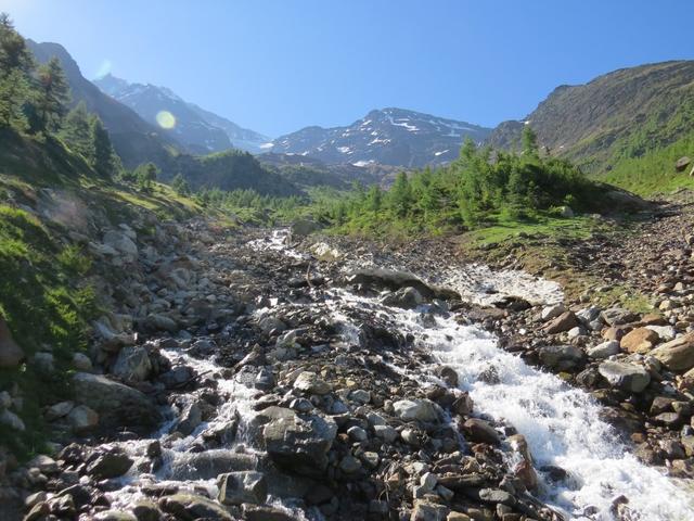 Blick von der Lonza, taleinwärts zur Lötschenlücke. Dort oben waren wir gestern