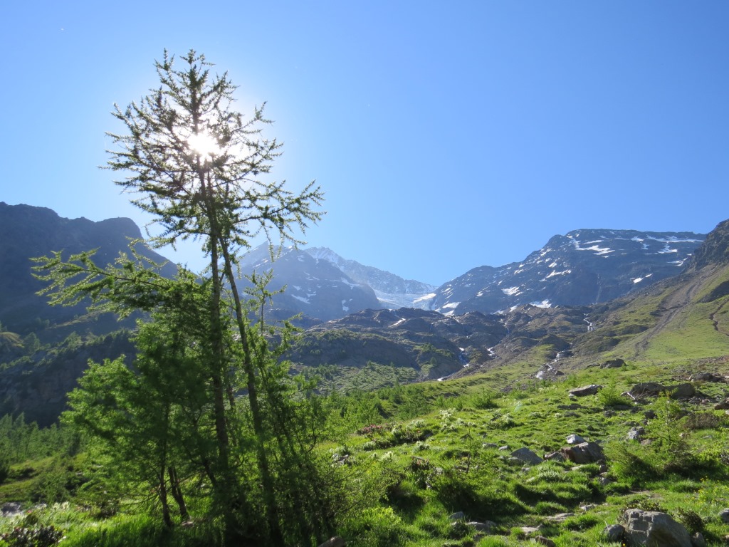 wir erreichen die Baumgrenze und zugleich die Sonne