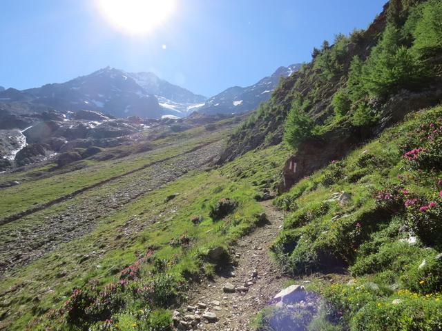 ausgeruht und mit einem guten Frühstück frisch gestärkt, verlassen wir das Hotel Fafleralp