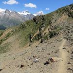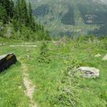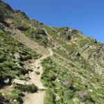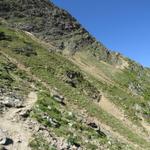 der Bergpfad biegt nun, nach ein paar Serpentinen, rechts ab Richtung Punkt 2415 m.ü.M.