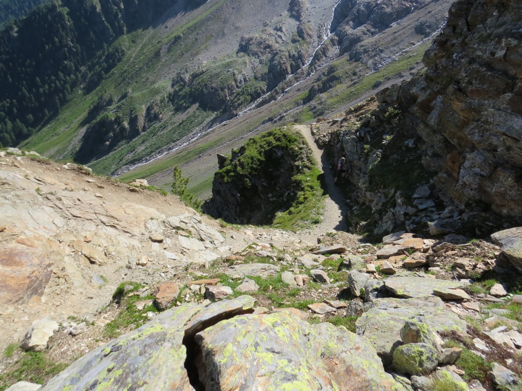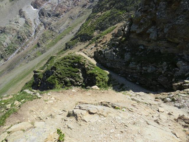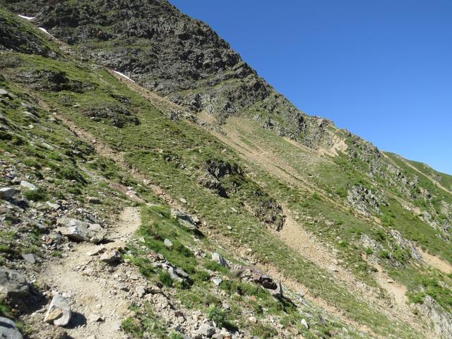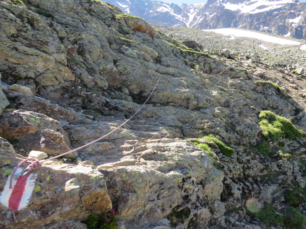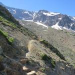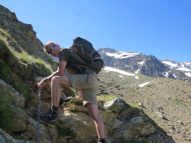 der Weg ist gut angelegt, und zur Sicherheit noch mit Ketten gesichert. Gut ersichtich der weitere Wegverlauf