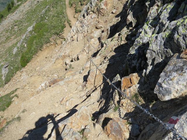 der Weg ist nicht wirklich richtig ausgesetzt, aber Ketten geben einem die notwendige Sicherheit, (wenn erwünscht)