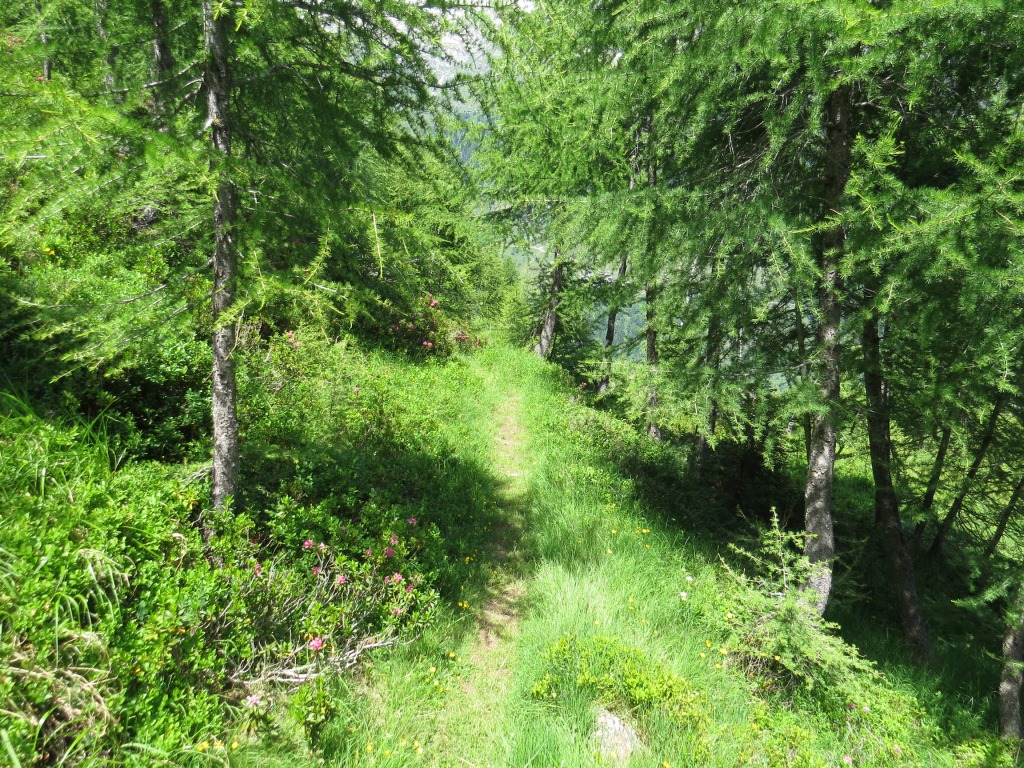 wir tauchen ein, in einem sehr schönen Lärchenwald