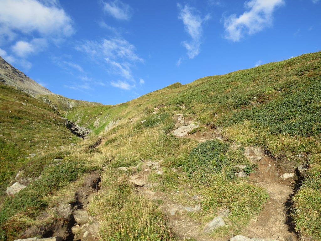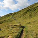 der Weg führt zuerst moderat über die Alpweiden von Puozas Datum 21.03.2016