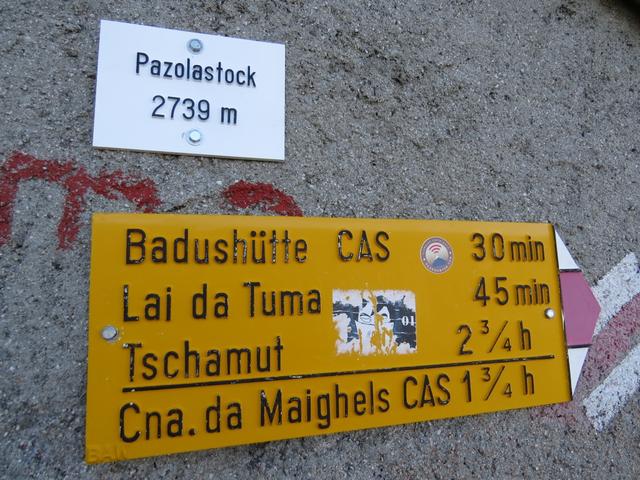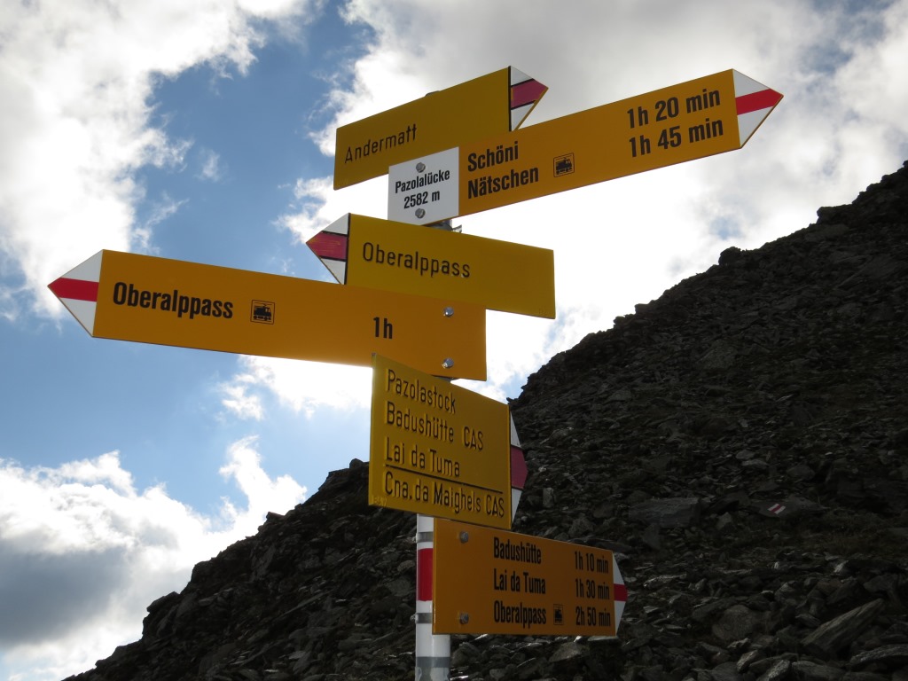 Wegweiser bei 2577 m.ü.M. Hier biegen wir links ab Richtung Pazolastock Datum 21.03.2016
