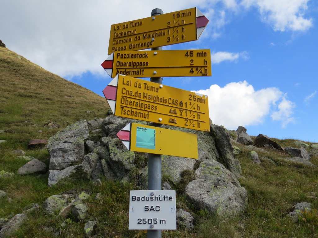 Wegweiser auf dem Oberalppass 2044 m.ü.M. Unsere heutige Wanderung wird uns auf den Pazolastock führen Datum 21.03.2016
