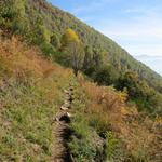 wir verlassen das kleine Plateau der Alpe Cardada und folgen rechts einem leicht abfallenden Saumpfad...