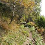 nach den Rustici setzt sich das schmale Weglein um das grossartige Tobel des Val Resa herum fort