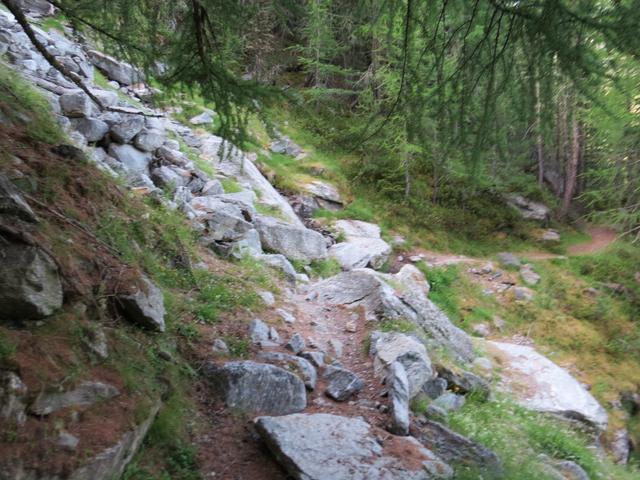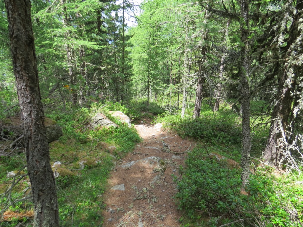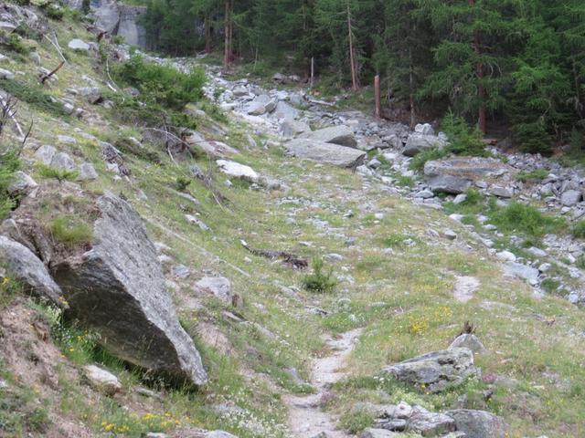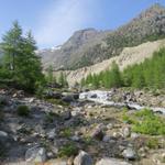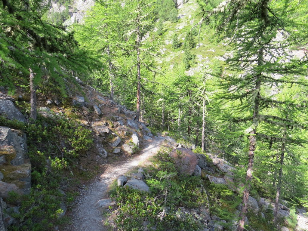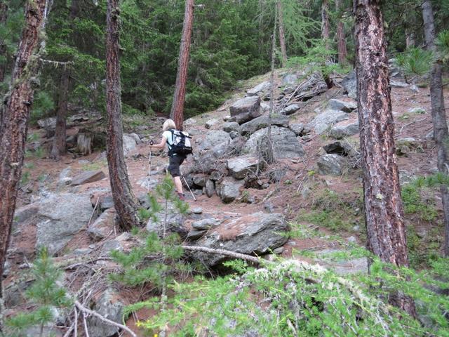 durch einen Lärchenwald, durchqueren wir das Ende der Seitenmoräne, und laufen Richtung Punkt 2055 m.ü.M. Datum 09.11.2015