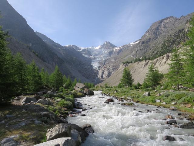 auf der gegenüberliegender Seite vom Gletscher ist die Bordierhütte sichtbar Datum 10.11.2015