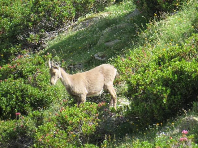 eine Steingeiss (weiblicher Steinbock) überquert den Wanderweg Datum 09.11.2015