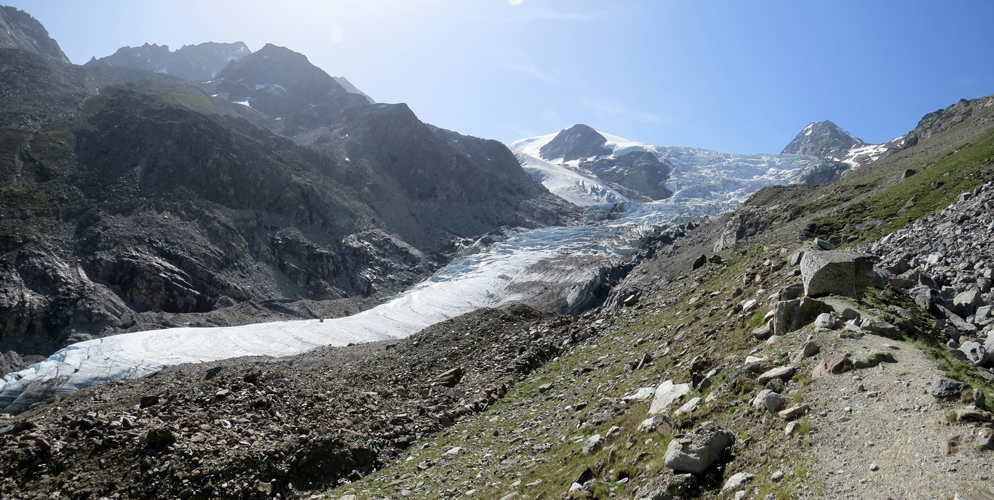schönes Breitbildfoto aufgenommen auf der Mittelmoräne vom Riedgletscher Datum 23.02.2017