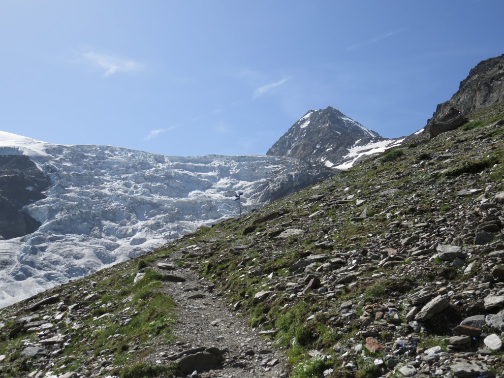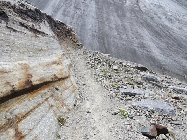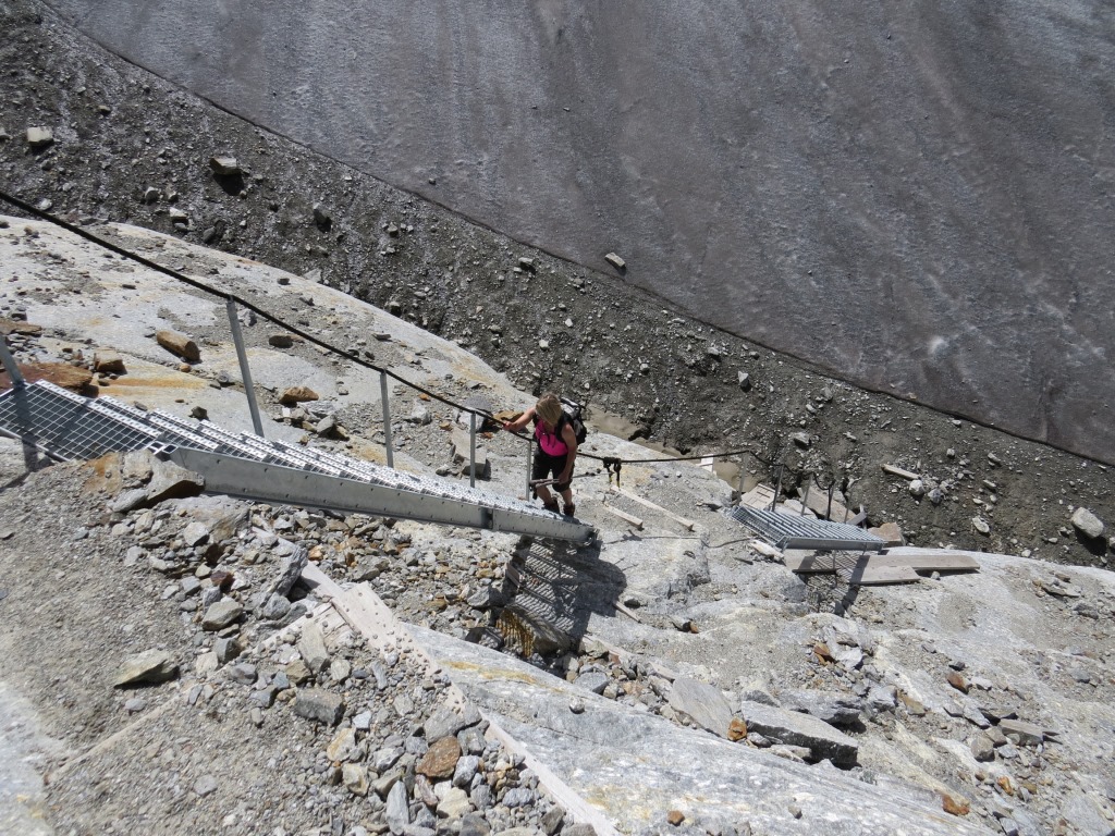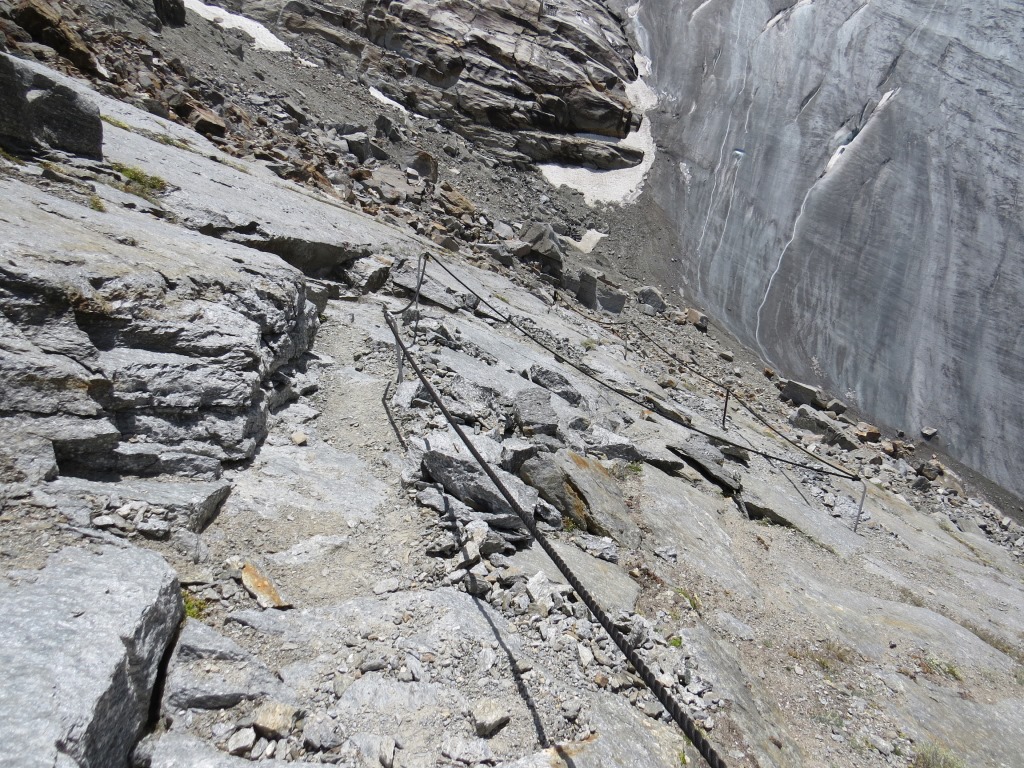steil, ja man kann sagen fast senkrecht, geht es abwärts zum Riedgletscher Datum 19.11.2015