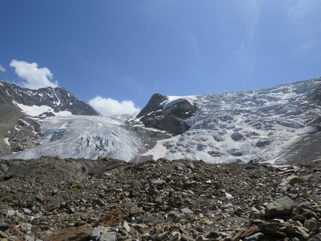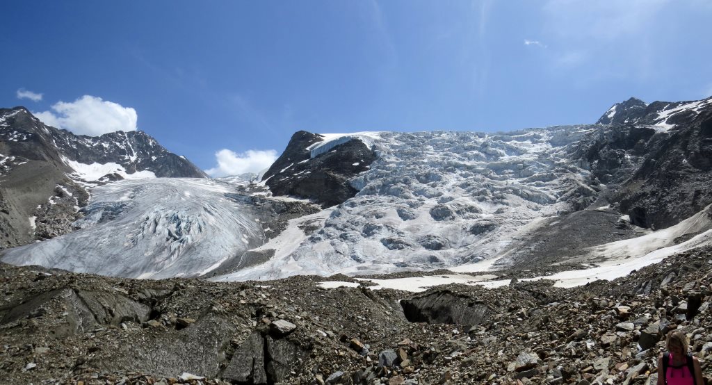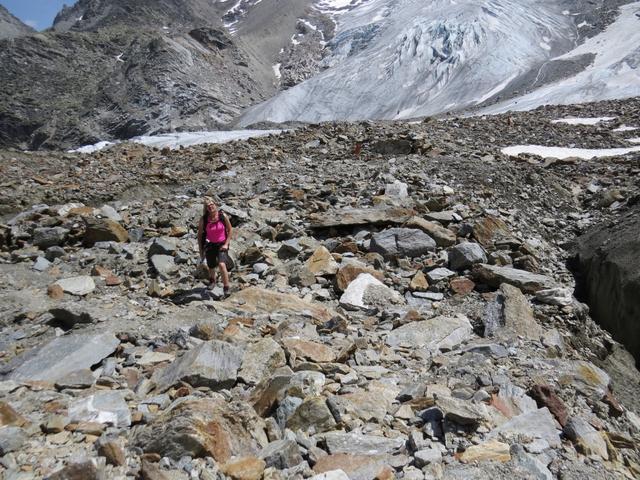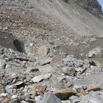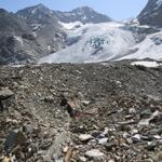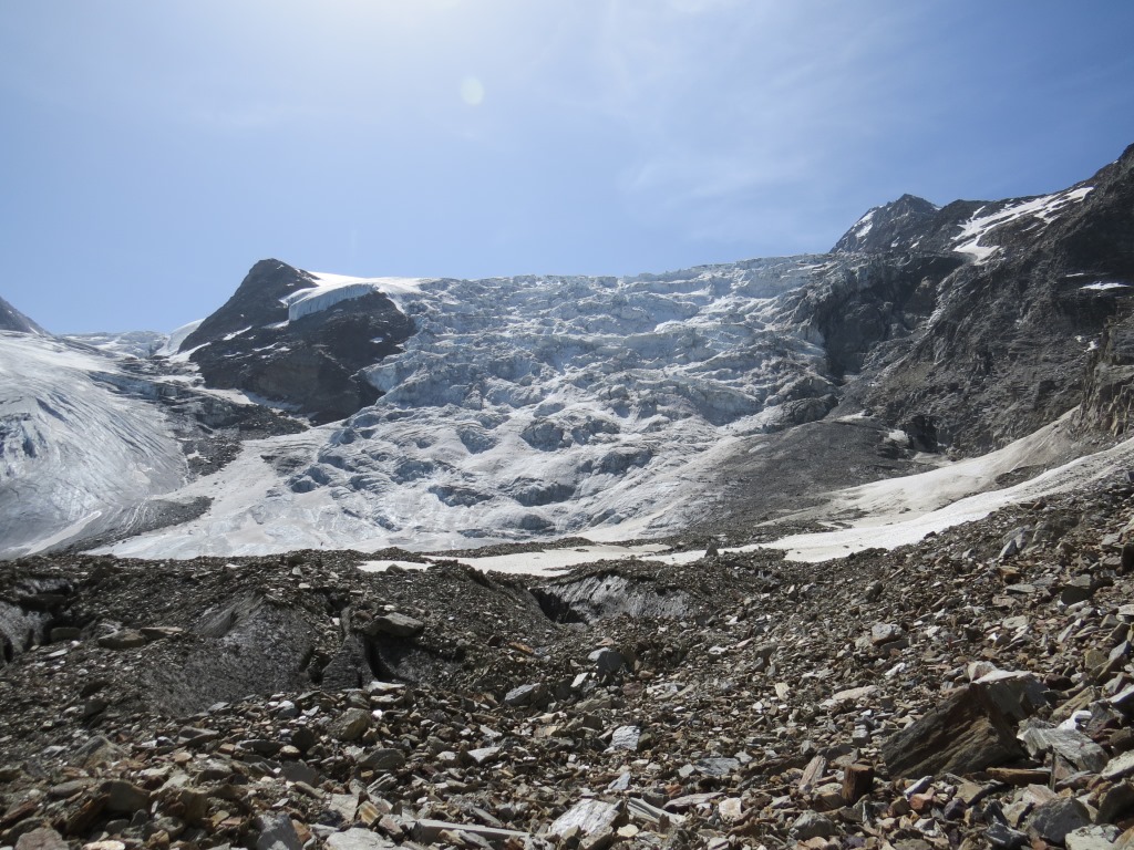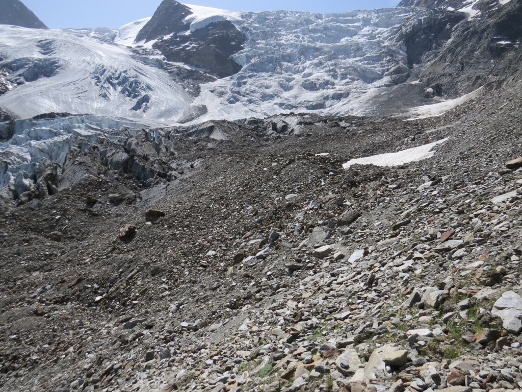 über Geröll und Schutt erreichen wir den Riedgletscher Datum 10.11.2015