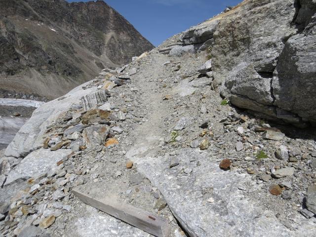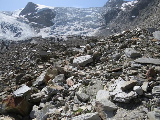 der Bergweg führt uns nun über Geröll und Schutt, zum Gletscher hinunter Datum 10.11.2015