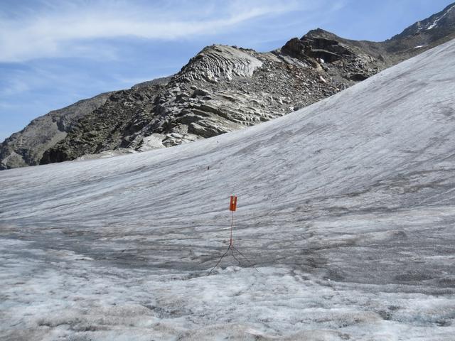 die Markierungsstangen sind auf dem Gletscher immer gut sichtbar Datum 10.11.2015