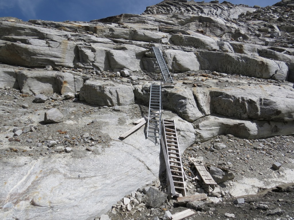 der Weg über den Riedgletscher ist mit Eisenstangen gut markiert Datum 10.11.2015