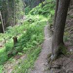 es geht durch einen dichten Tannen und Laubwald Datum 01.06.2016
