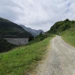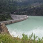 auf einer breiten Kiesstrasse gewinnen wir an Höhe und laufen rechts an der Staumauer vorbei